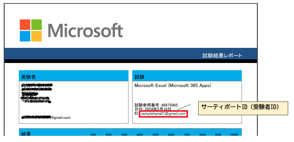サーティポートIDは弊社でも調べられないため、試験当日にお渡しした「試験結果レポート」でIDをご確認ください。