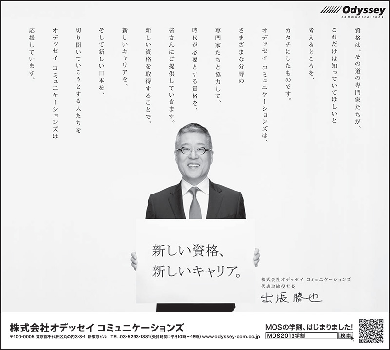 2015年4月7日(火)発行の『東京大学新聞』 -就職特集号 Ⅰ -(発行:東京大学新聞社)に、「新しい資格、新しいキャリア。」というメッセージと弊社代表の写真ビジュアルとで構成した新聞広告を展開しました。