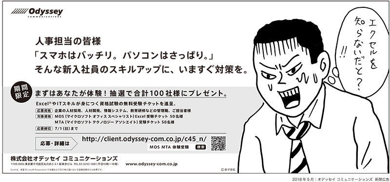 紙面では、蛭子能収(えびす・よしかず)さんのイラストと併せ、「スマホはバッチリ。パソコンはさっぱり。そんな新入社員のスキルアップに、いますぐ対策を。」のメッセージを掲載。